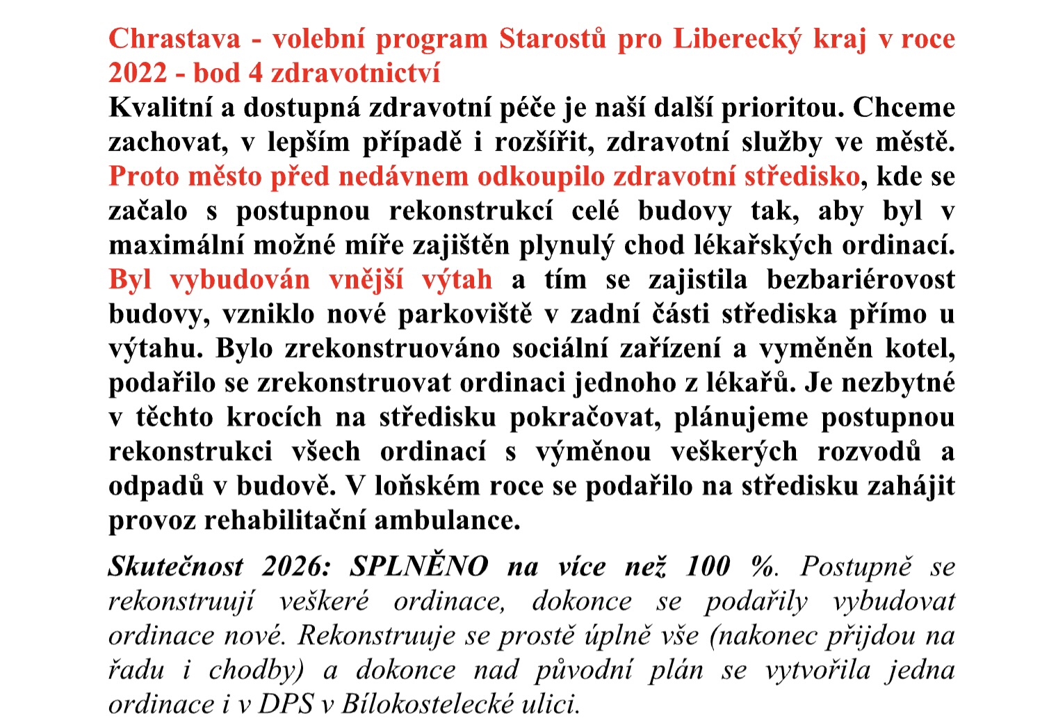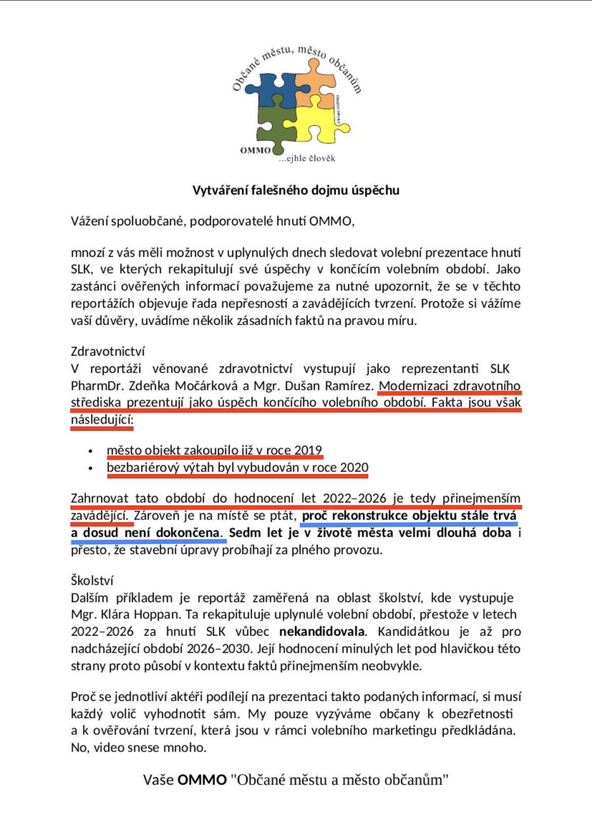 Starosta Chrastavy Michael Canov (Starostové pro Liberecký kraj) reaguje na stanovisko hnutí OMMO (Občané městu, město občanům) ohledně chrastavského zdravotního střediska v Polní ulici. Upozorňuje na to, jak je důležitá funkční gramotnost... ZDE text SLK.