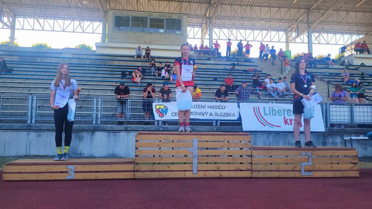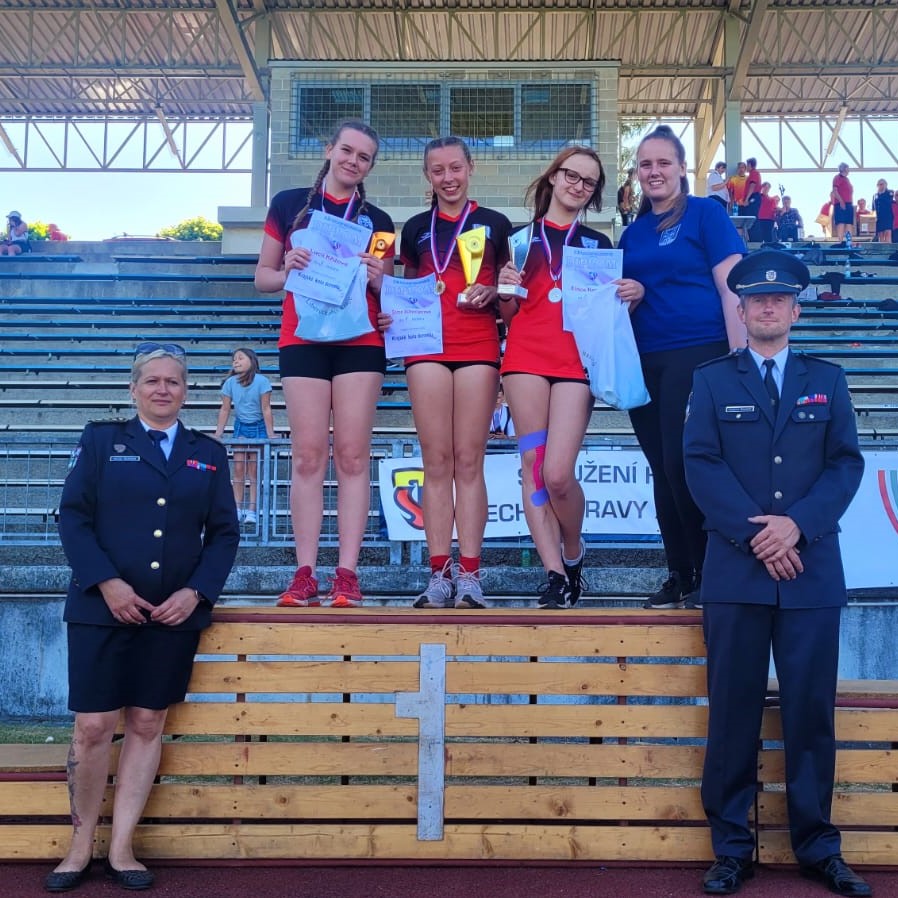 Holky na rozpáleném stadionu předvedly neskutečné výkony, kdy prakticky při každém pokusu překonávaly svoje dosavadní osobní rekordy. A díky tomu se tak všechny tři umístily na stupních vítězů. Eliška získala stříbro, Lucie bronz. O největší senzaci se postarala Šárka, pro kterou je dorostenecká kategorie novinkou a umístila se na 1. místě. Díky tomu se zároveň nominovala na Mistrovství České Republiky, kam postupuje jen vítěz z každé kategorie. Chrastavští hasiči se tak po dlouhé době podívají na MČR pro dorost, které proběhne ve dnech 1. - 3. července v Domažlicích.