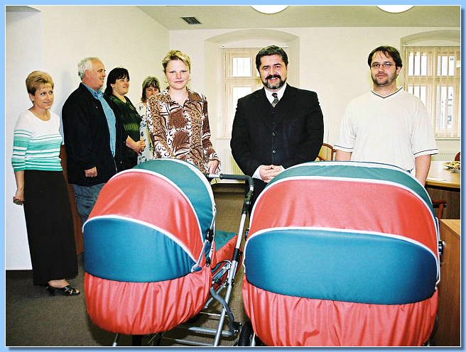 Jsou to tři kluci – z leva Matěj, Jakub a Lukáš Cellerovi. Ve středu 7. června se v malé zasedací síni konala oslava. Pan starosta Ing. Michael Canov předal rodičům trojčat dva kočárky: jeden pro dvojčata a druhý pro jedno děcko.
