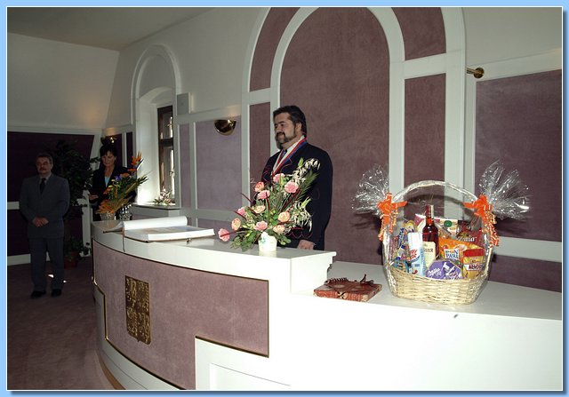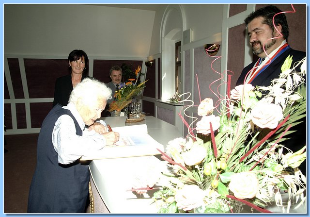 Při té příležitosti proběhl slavnostní akt v obřadní síni městského úřadu, kde starosta města Ing. Michael Canov za přítomnosti místostarosty pana Miloslava Pilaře a dalších hostů přednesl krátký a milý projev. Poté se paní Marie Fijalková podepsala do kroniky města a nechyběl ani přípitek. Následovalo fotografování a gratulace s přáním pevného zdraví.