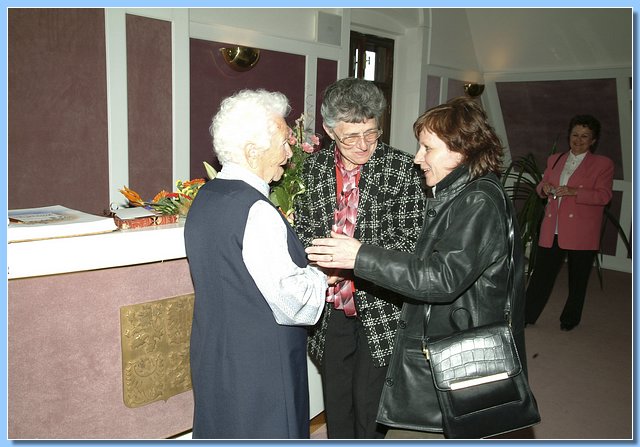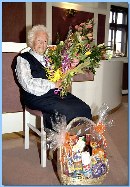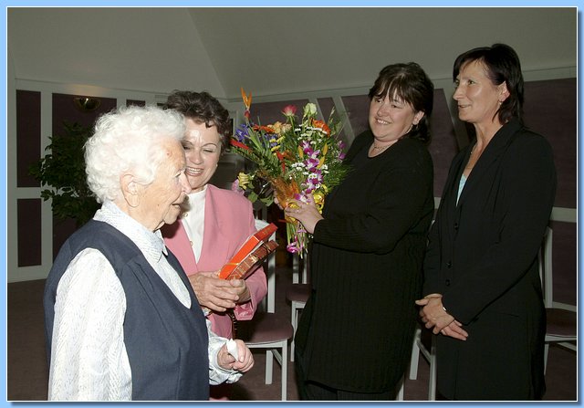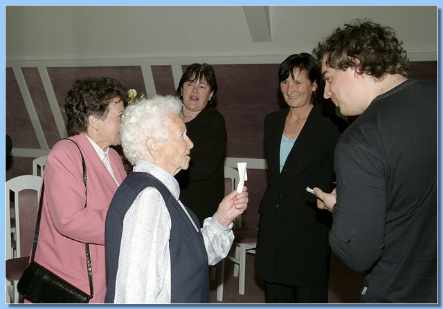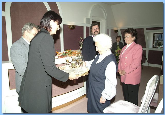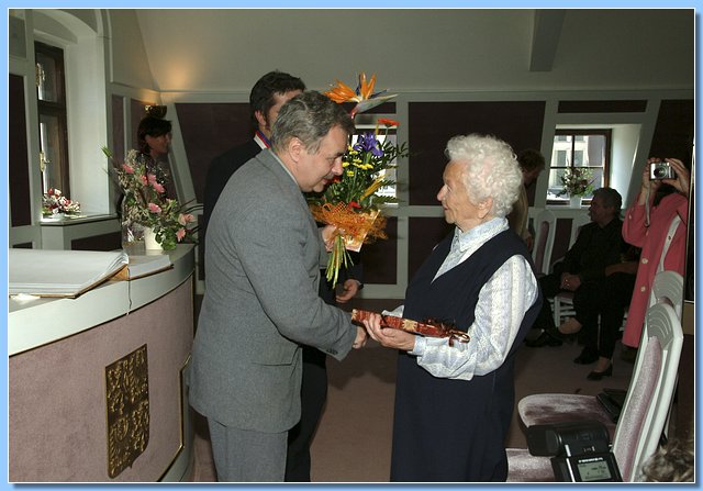 Mezi gratulanty, kterých se sešlo opravdu hodně, nechyběla ani zástupkyně Krajské správy sociálního zabezpečení v Liberci, která oslavenkyni předala krásnou kytici a osobní dopis ministra Petra Nečase.