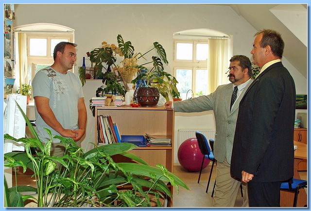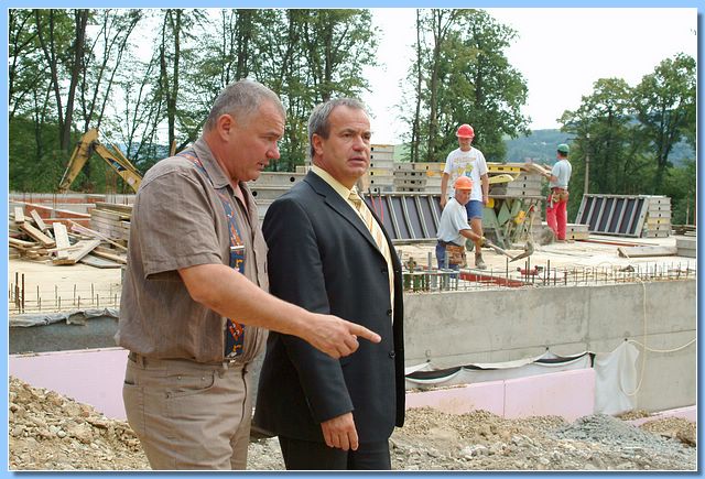 Po prohlídce samotné radnice a krátké diskusi s pracovníky jednotlivých odborů, následovala prohlídka rozestavěných termálních lázní. Pracovníci investora společnost Dům pohody a. s. v čele s jejím vlastníkem panem Ing. Janem Imlaufem provedli pana hejtmana celým areálem.
