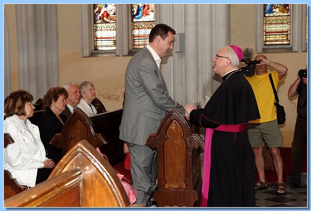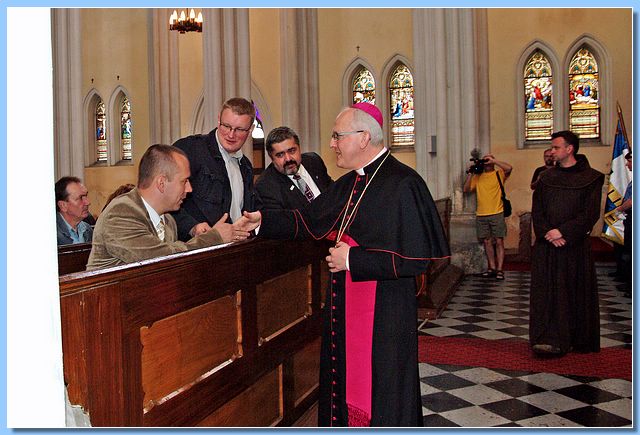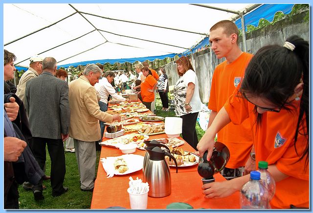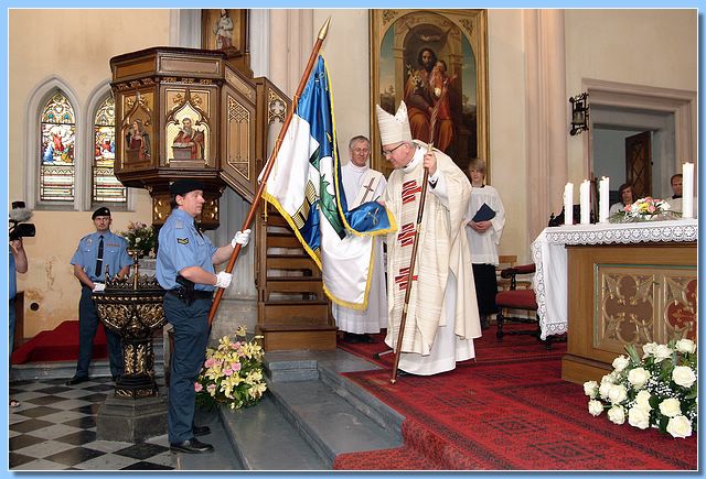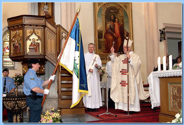 Během slavnostní dvouhodinové mše v přeplněném kostele drželi službu u naší vlajky členové městské policie strážníci Marcel Másílko a Mojmír Boch. Po skončení mše a požehnání vlajky pozval pan biskup spolu s panem farářem širokou veřejnost na piknik, který se uskutečnil v parku vedle kostela.