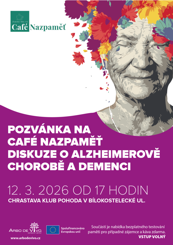 Lektorka v „Café nazpaměť“ je zkušená sociální pracovnice, která s osobami s demencí denně pracuje. Má k dispozici celý balík poznatků, zkušeností a dobrých rad, které jsme v našem ústavu postupem let a v různých projektech nasbírali. Má smysl se do „Café nazpaměť“ přijít podívat. Rádi Vás přivítáme 12. 3. 2026 od 17 hodin v Klubu Pohoda na ulici Bílokostelecká v Chrastavě.